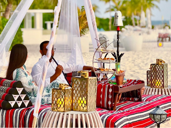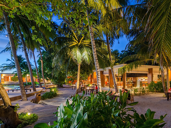 Az étteremteraszok nappali beach hangulatát vacsoraidőben a lemenő nap sugarai, majd a gyertyafényes asztalok és színes lampionok romantikus atmoszférája váltja fel. Az óceán víztükre fölé épített teraszon elfogyasztott fogások, vagy az óceánparton rendezett Maldív vacsora nem csak egyszerű gasztronómiai élmény, valamennyi érzékszervünkre ható kulináris utazás. A romantikus hangulatot fokozhatjuk, ha egy privát vacsorát foglalunk a homokban, gyertyafényes díszítéssel és az óceán morajlásával a háttérben. Különleges, életre szóló élmények.