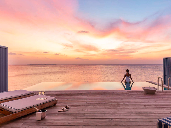 A víz fölött lebegő villákban a környezet közelsége válik az egyik fő élménnyé. Medencénk víztükre belesimul a lagúna végtelennek tűnő árnyalataiba, olyan mintha az óceán is a teraszunk része lenne. Amikor kilépünk a medencéhez, vagy leereszkedünk a vízhez vezető lépcsőn, olyan érzésünk támad, mintha a villa és a természet között nem is lenne határvonal, csupán egy finoman rajzolt átmenet. A terek nagyvonalúsága, a minimalista bútorozás és a természetes színek mind azt sugallják, hogy itt a luxus nem a tárgyak számosságában, hanem a térben, a fényben és a könnyedségben rejlik.